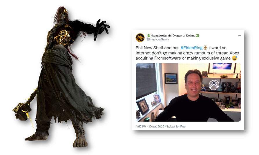Le buzz kit a initialement été envoyé aux comptes les plus populaires sur YouTube et Twicth pour toucher le cœur de cible et ensuite à d’autres personnalités comme Phil Spencer, le grand patron de Xbox au niveau monde. C’est lors d’une prise de parole en direct que les fans, le client (Bandai Namco) et l’agence, ont découvert “notre épée” Elden Ring sur les étagères du Phil Spencer. En parallèle, des centaines de contenus ont été créées à travers le monde dont cet incroyable et immanquable unboxing de la part du YouTubeur TheRelaxingEnd, dont la vidéo approche les 4,5M de vues.